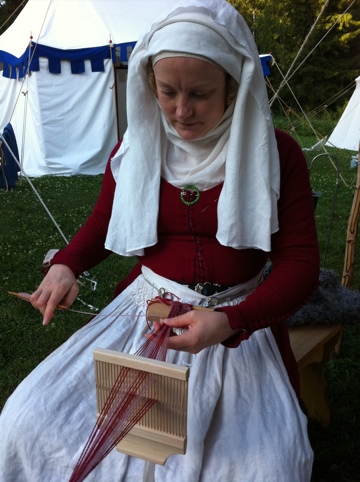 I hardly remebered to take pictures of life at camp this year, except for one sunny day when we shot a new veil tutorial in my tent. Quite a few people asked me how I assemble my headdress when we were at Turku medieval market this year, which inspired me to update and renew the veil page here on Neulakko and add a new tutorial on the style of veil which I have preferred this summer. I hope you find it useful.